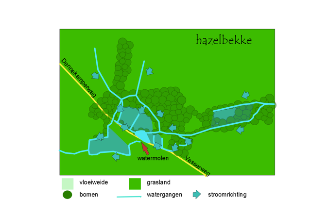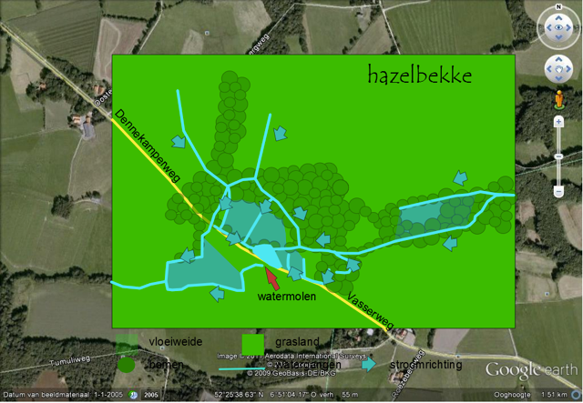 Doorgebrek aan tijd heb geen uitgebreid onderzoek kunnen doen, heb ik een tekening gemaakt op basis van google earth ,veldwerk en historische atlas 1905 hoe een deel van het watersysteem gewerkt zou kunnen hebben.